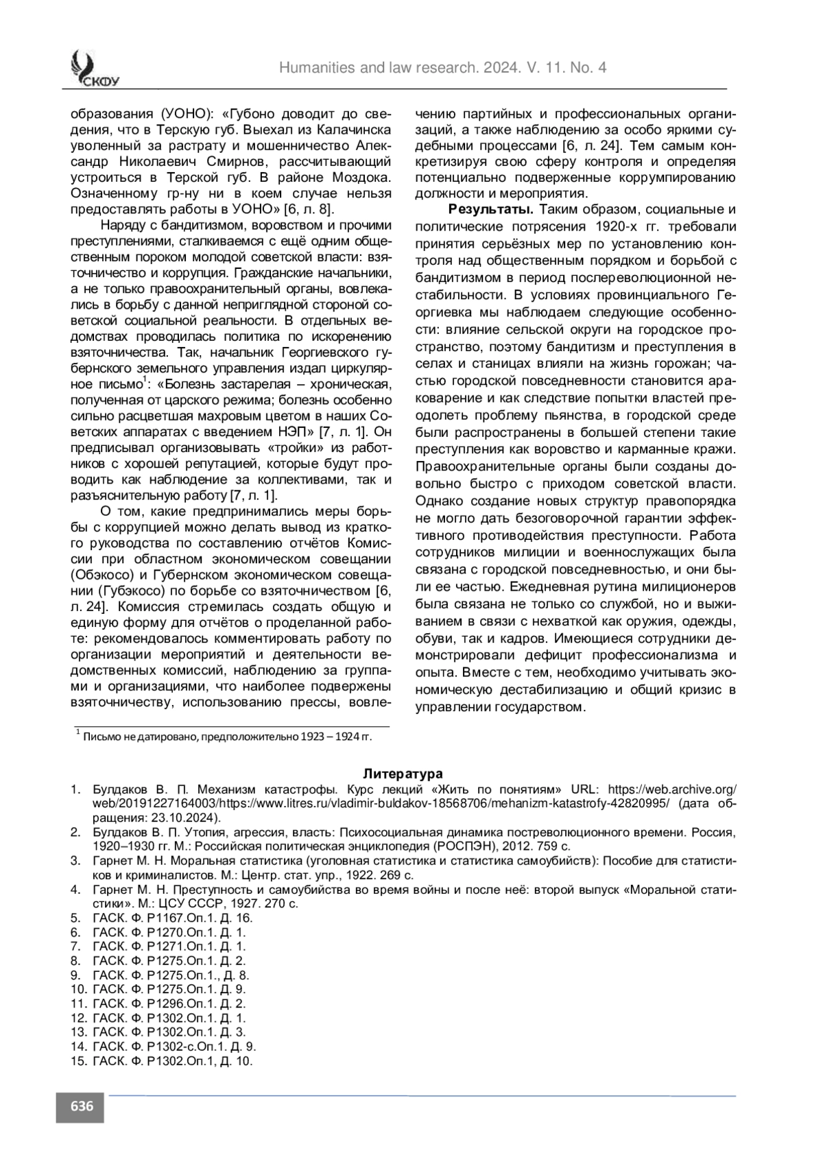 23. Никулин В. В. Преступность как социально-правовое явление в 1920-е годы: тенденции и состояние // Исторические, философские, политические и юридические науки, культурология и искусствоведение. Вопросы теории и практики. 2009. № 2. С. 55-60.