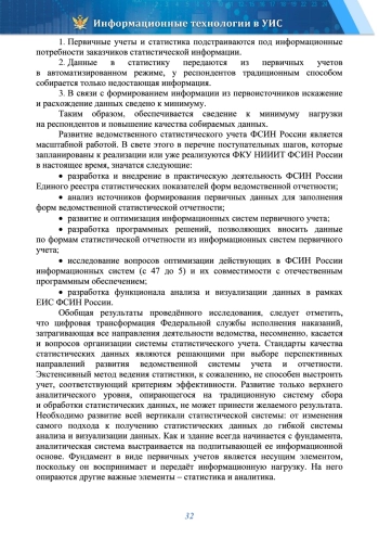 11. Соболева О.В. Развитие ведомственного статистического учета Федеральной службы исполнения наказаний в условиях цифровой трансформации // Статистика и экономика. 2022. Том 19. № 6. С. 28-39. EDN: UKROZQ