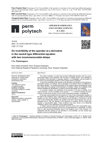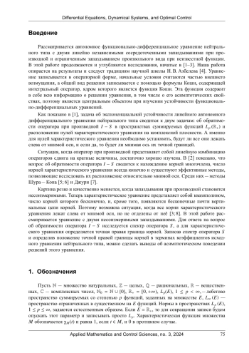 1. Баландин, А. С. Экспоненциальная устойчивость автономных дифференциальных уравнений нейтрального типа. I / А. С. Баландин // Изв. вузов. Матем. - 2023. - № 3. - С. 12-28. EDN: USYUZO