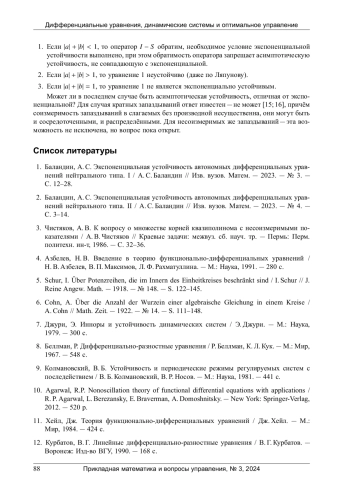 2. Баландин, А. С. Экспоненциальная устойчивость автономных дифференциальных уравнений нейтрального типа. II / А. С. Баландин // Изв. вузов. Матем. - 2023. - № 4. - С. 3-14. EDN: BJZQHA
