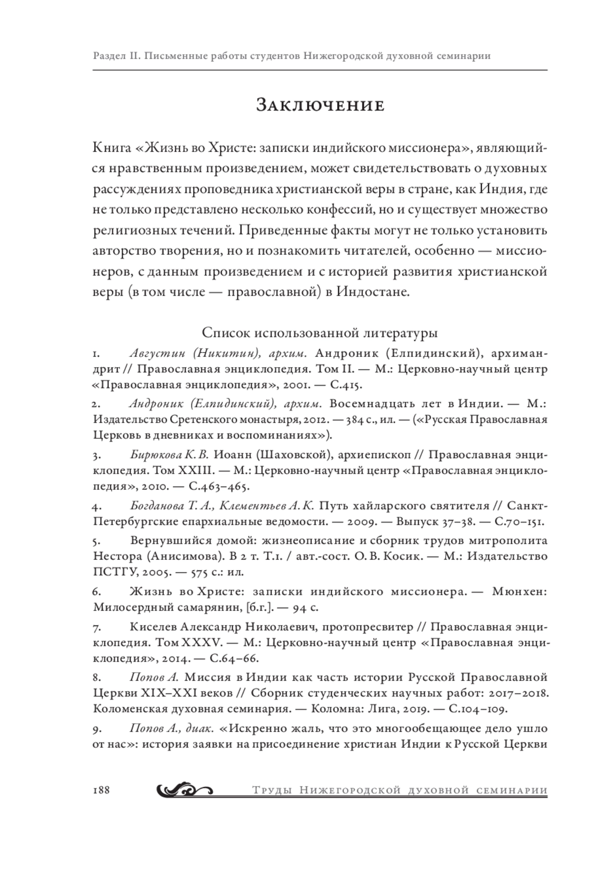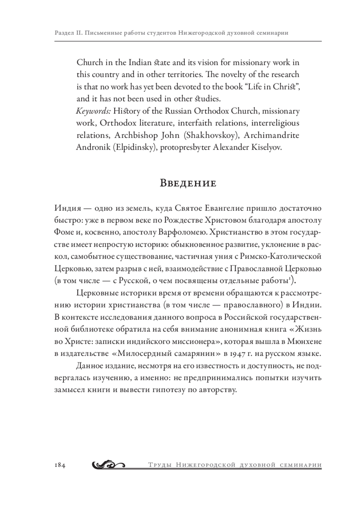 Попов А.Д., диак. Анонимное издание “Жизнь во Христе: записки индийского миссионера”: проблемы авторства и содержания // Труды Нижегородской духовной семинарии. - 2024. - №1 (16). - С.96-116.