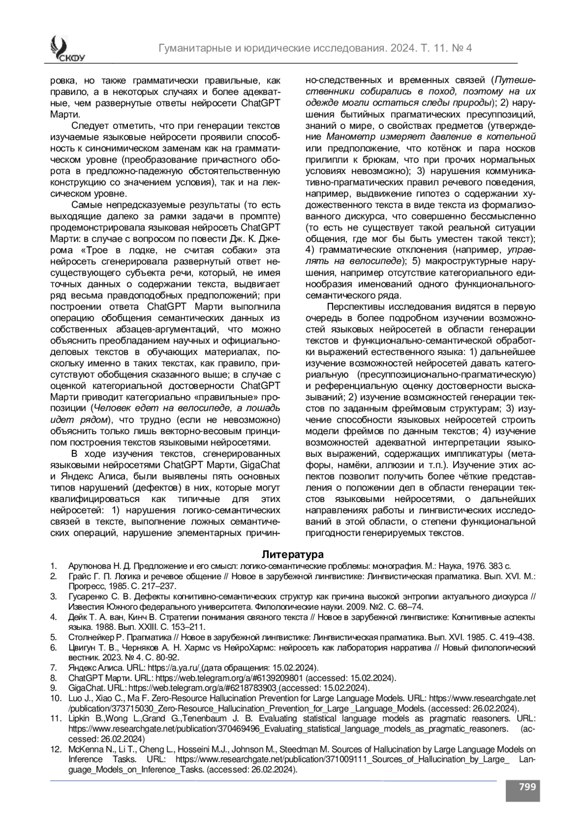 10. Luo J., Xiao C., Ma F. Zero-Resource Hallucination Prevention for Large Language Models. URL: https://www.researchgate.net/publication/373715030_Zero-Resource_Hallucination_Prevention_for_Large _Language_Models. (accessed: 26.02.2024).
