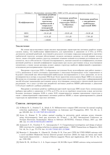 5. Elabd R. H., Al-Gburi A. J. A. Super-compact 28/38 GHz 4-port MIMO antenna using metamaterial-inspired EBG structure with SAR analysis for 5G cellular devices // Journal of In frared, Millimeter, and Terahertz Waves, 2024. Vol. 45. No. 1. pp. 35-65. DOI: 10.1007/s10762-023-00959-6 EDN: WCPKZO