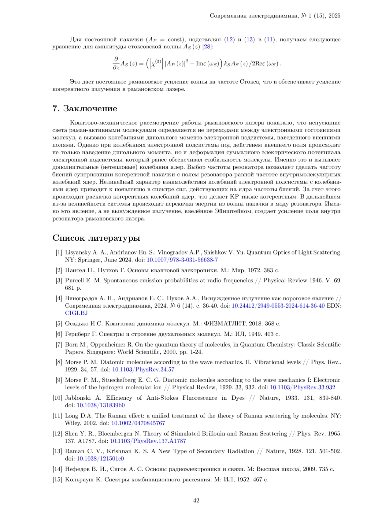 4. Виноградов А. П., Андрианов Е. С., Пухов А.А., Вынужденное излучение как пороговое явление // Современная электродинамика, 2024. № 6 (14). с. 36-40. DOI: 10.24412/2949-0553-2024-614-36-40