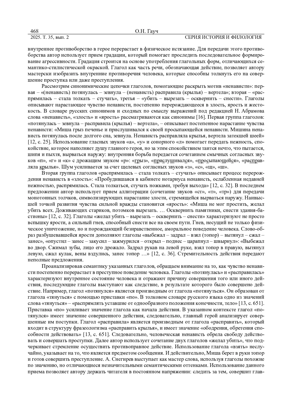 ГАУЧ О. Н. РОЛЬ ГЛАГОЛОВ В РАСКРЫТИИ МОТИВА НЕНАВИСТИ В ПРОИЗВЕДЕНИИ А. СНЕГИРЕВА «ВНУТРЕННИЙ ВРАГ» // ВЕСТНИК УДМУРТСКОГО УНИВЕРСИТЕТА. СЕРИЯ: ИСТОРИЯ И ФИЛОЛОГИЯ. 2025. Т. 35 № 2