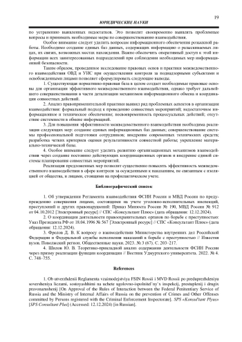 3. Фролов Д. В. К вопросу о взаимодействии Министерства внутренних дел Российской Федерации и Федеральной службы исполнения наказаний в борьбе с преступностью // Известия вузов. Поволжский регион. Общественные науки. 2023. № 3 (67). С. 203-217.