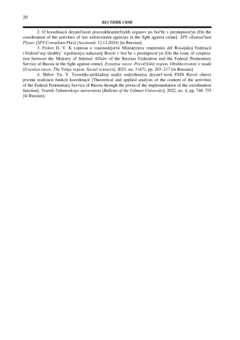 4. Шилов Ю. В. Теоретико-прикладной анализ содержания деятельности ФСИН России через призму реализации функции координации // Вестник Удмуртского университета. 2022. № 4. С. 748-755.