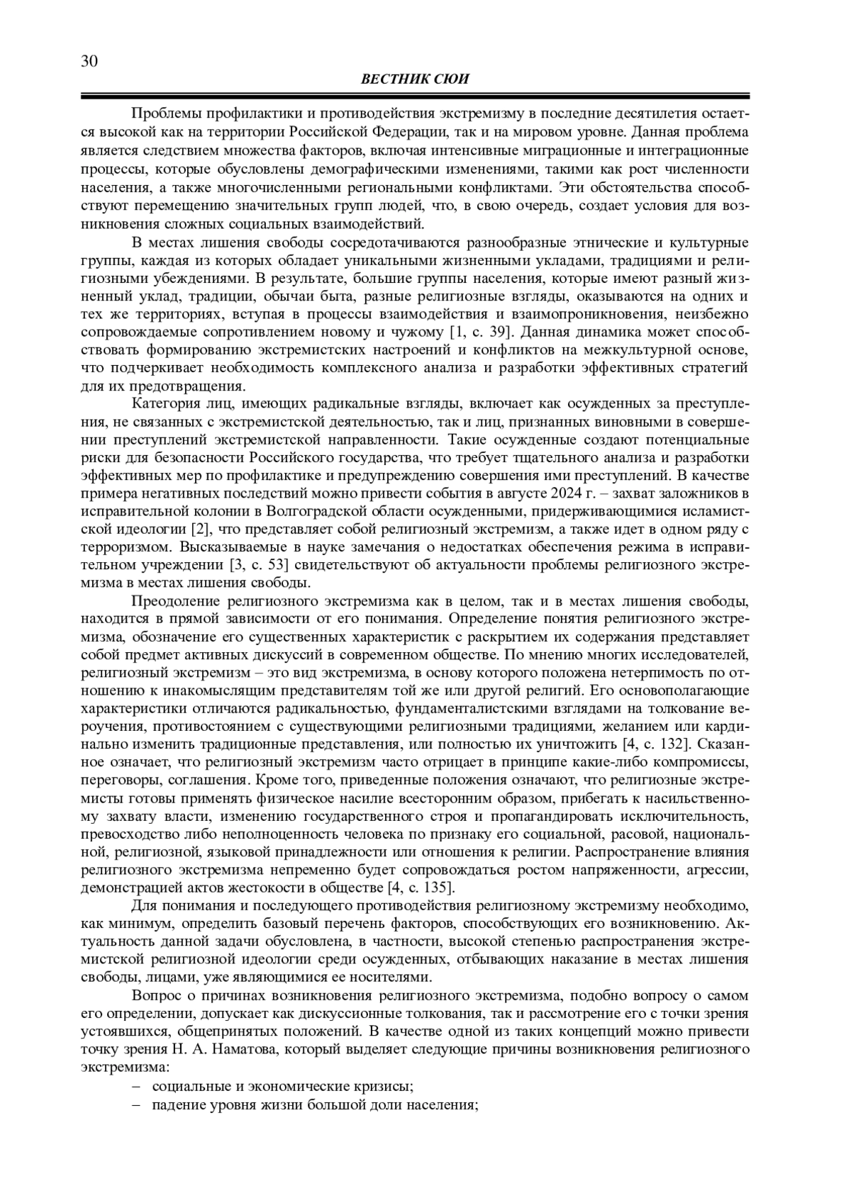 9. Бакулина Л. В., Халилов Р. Н., Мустафина А. Р. Экстремизм в местах лишения свободы // Вестник экономики, права и социологии. 2016. № 4. С. 145-148. EDN: XVAHEJ