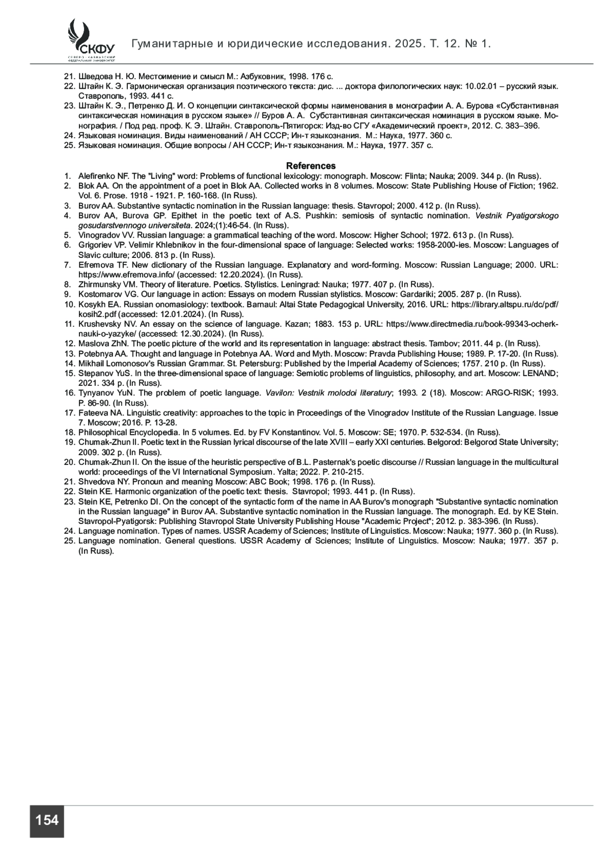 3. Буров А. А. Субстантивная синтаксическая номинация в русском языке: дис. ... доктора филол. наук. Ставрополь, 2000. 412 с.