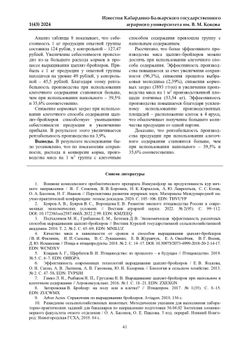 3. Подчалимов М. И., Грибанова Е. М., Бетенев Д. В. Экономическая эффективность различных способов выращивания цыплят-бройлеров // Вестник Курской государственной сельскохозяйственной академии. 2010. Т. 2. № 2. С. 65-69. EDN: MNILUZ