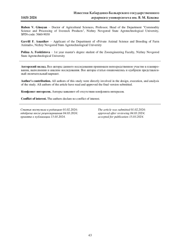 Данная работа посвящена выявлению изменений физико-химических показателей полуфабрикатов и ликероводочных изделий при обработке их холодом и оклеивающими веществами. Исследования проводились в условиях ООО «Эльбрус Спиритс» и на кафедре «Технология производства и переработки сельскохозяйственной продукции» Кабардино-Балкарского ГАУ в 2021-2023 гг. В качестве объектов исследований служили морсы и соки, выработанные из рябины, яблок и брусники. Спиртованные плодово-ягодные морсы и соки обрабатывали холодом при температурах: минус 3 + минус 6°С. Пробная обработка спиртованных соков показала, что оптимальная доза поливинилпирролидона (ПВП) для рябинового и брусничного соков составляет 200 мг/л, яблочного - 20 мг/л. Установлено, что при обработке ПВП и бентонитом значительно снижается количество фенольных веществ сока. При обработке спиртованных соков по данной схеме не наблюдалось заметного изменения содержания пектиновых веществ. Для предупреждения коллоидных помутнений рекомендованы следующие виды обработок: обработка холодом, заключающаяся в охлаждении полуфабрикатов или купажа до температуры (минус 3 + минус 6°С) и выдержка при этой температуре до 48 ч с последующей фильтрацией на холоду; обработка ПВП и бентонитом, для полуфабрикатов доза не превышает 200 мг/л, купажа - 100 мг/л. Количество бентонита, применяемого при этом, - 0,5-1,0 г/л. Отмечено, что наблюдается прямая пропорциональность между количеством добавленного желатина и деленных фенольных веществ, максимальное содержание полифенолов, связанных единицей желатина, при минимальной дозе оклеивающего материала. Наблюдение за стабильностью обработанного напитка показало, что оптимальная доза желатина 50 мг/л. При обработке указанной дозой в сочетании с 0,5 г/л бентонита напиток сохраняет товарный вид в течение 8 месяцев, контрольный образец - 2 месяцев.