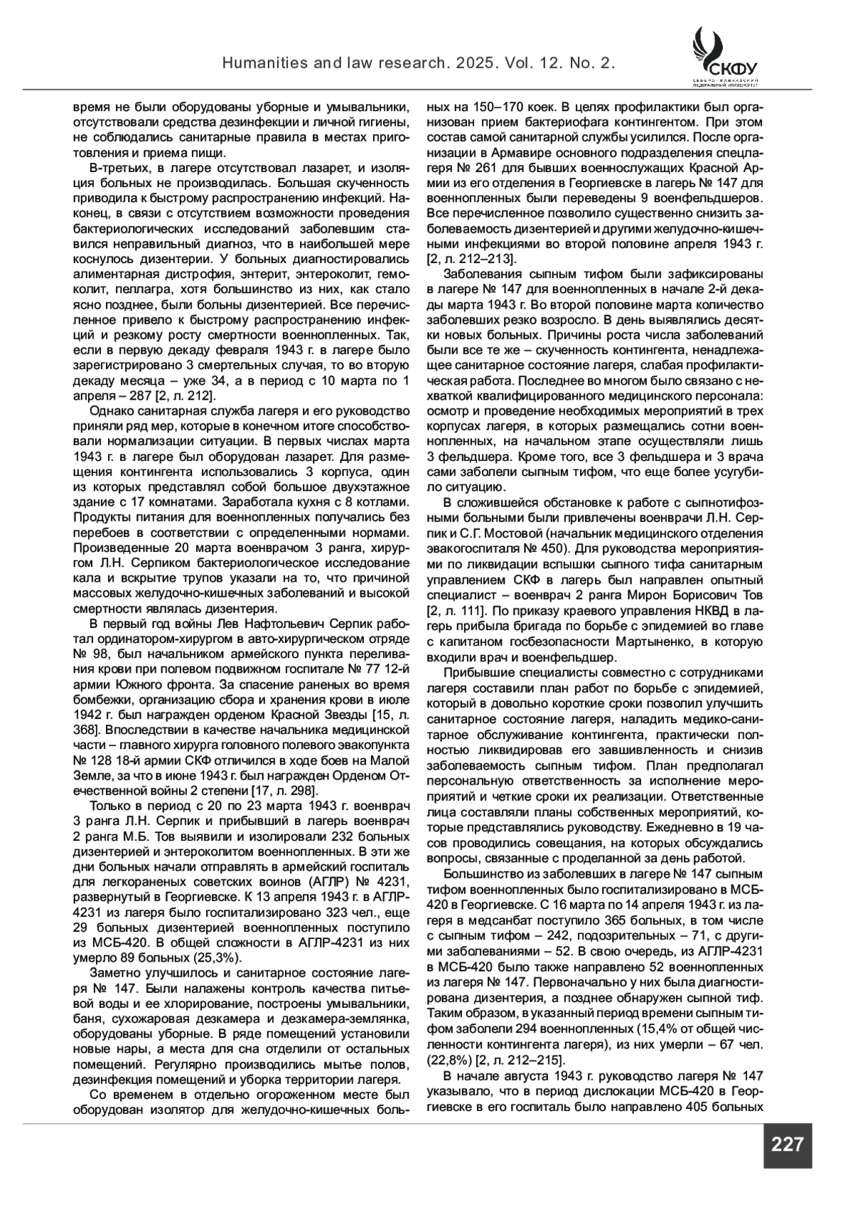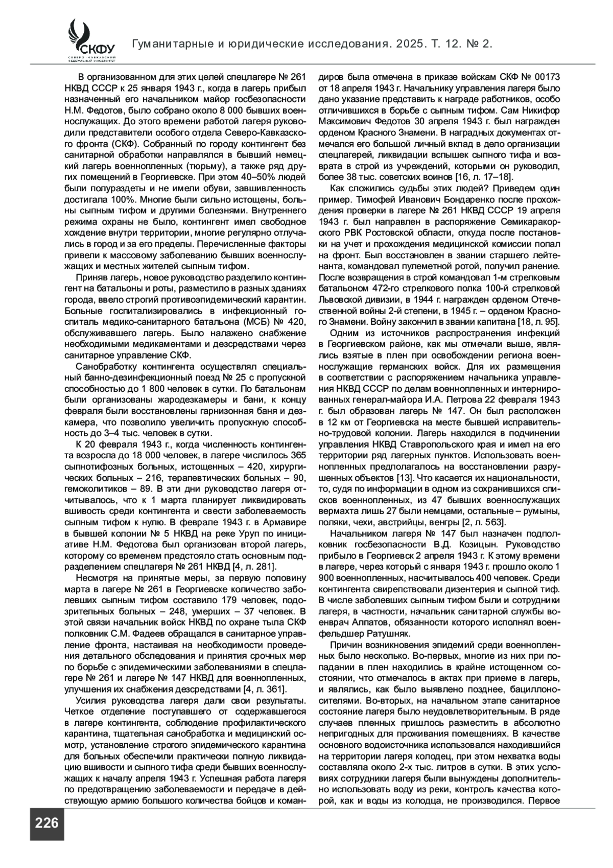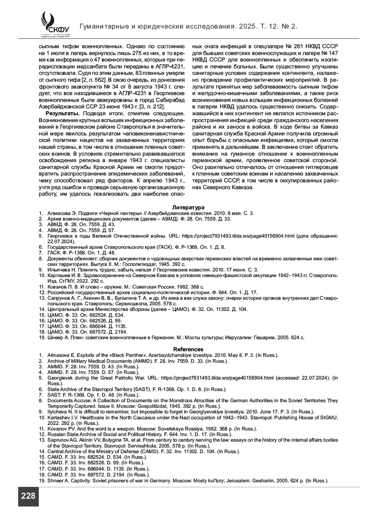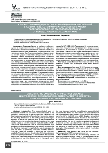 10. Карташев И. В. Здравоохранение на Северном Кавказе в условиях немецко-фашистской оккупации 1942-1943 гг. Ставрополь: Изд. СтГМУ, 2022. 292 с.