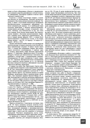 Анализ. Основными источниками вспышек инфекционных заболеваний в Георгиевском районе после его освобождения от оккупантов являлись бывшие советские военнослужащие, прошедшие немецкий плен, и военнопленные германской армии. В этой связи одними из важнейших задач для нормализации эпидемиологической обстановки в районе являлись изоляция и скорейшее снижение уровня заболеваемости контингента спец-лагеря № 261 и лагеря № 147 НКВД СССР.
