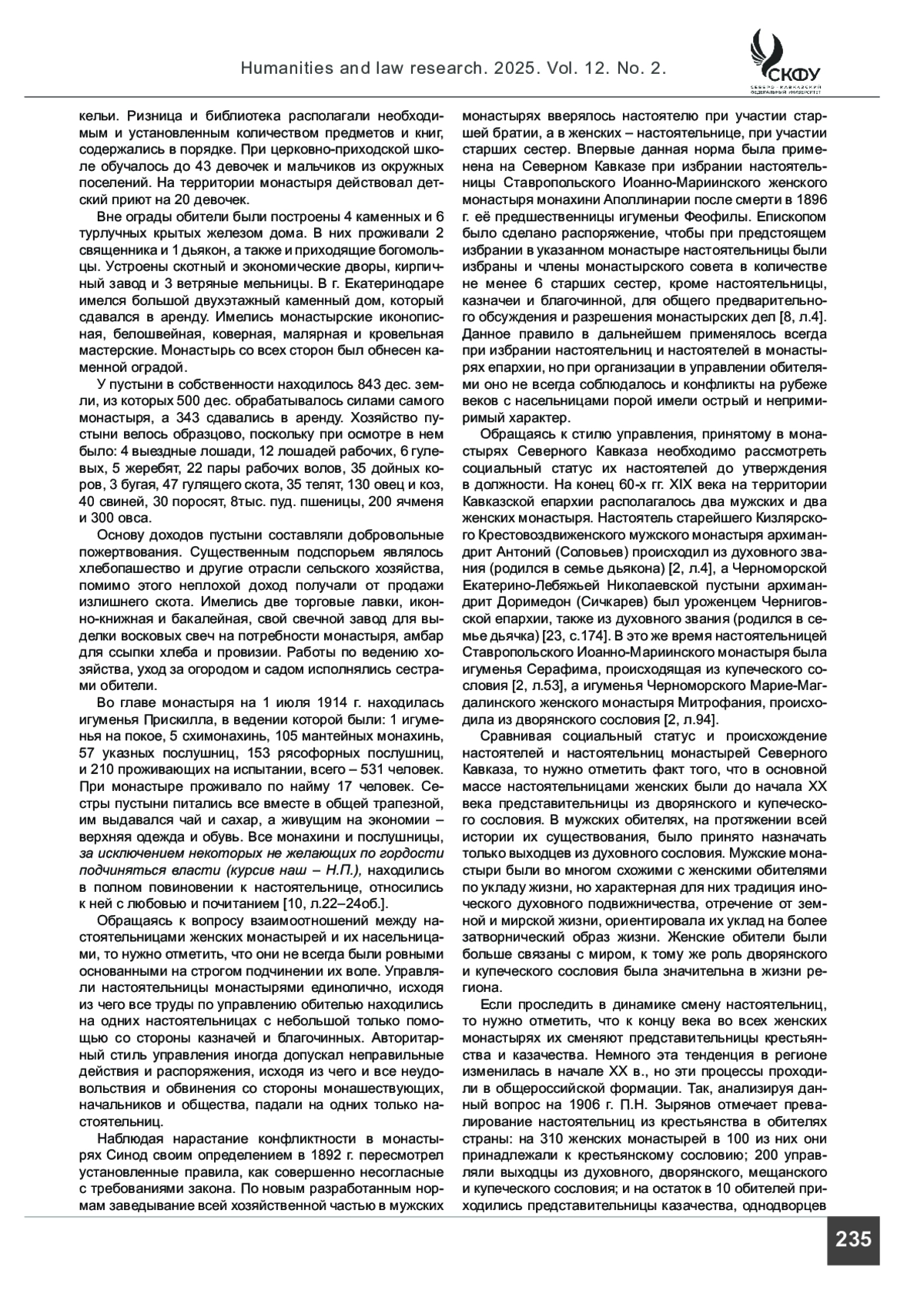 14. Герман Р. Э., Лукьянов Г. И., Малявина Г. И., Миронова Е. Н., Немашкалов П. Г. Проблемы организации миссионерской деятельности Русской Православной Церкви на Северном Кавказе в первой половине XIX в. // Вопросы истории. 2022. № 3-2. С. 70-76.