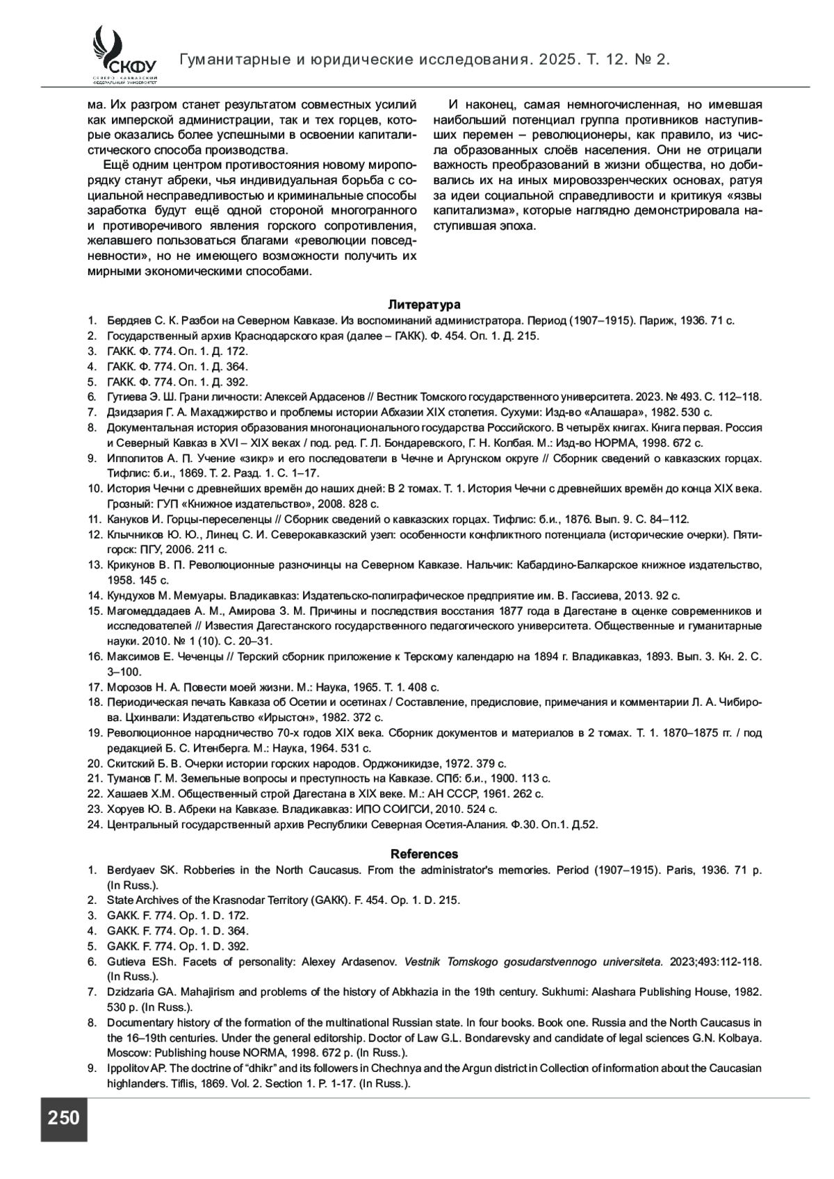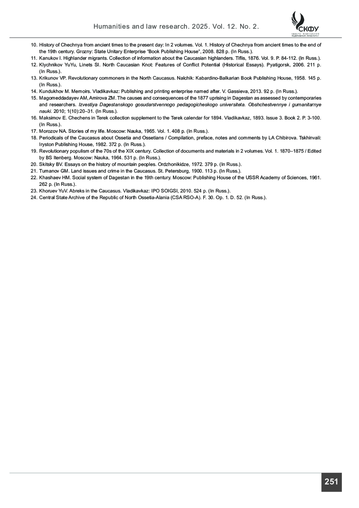 12. Клычников Ю. Ю., Линец С. И. Северокавказский узел: особенности конфликтного потенциала (исторические очерки). Пятигорск: ПГУ, 2006. 211 с.