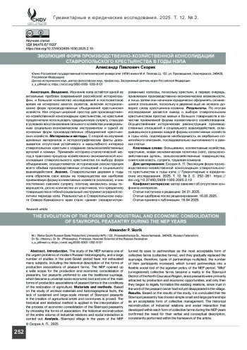 Введение. Изучение нэпа остаётся одной из актуальных проблем современной российской историографии, и большое количество исследований в постсоветское время не исчерпало многих сюжетов, включая историописание форм производственных объединений крестьянских хозяйств. Нэп открыл широкий простор для производственно-хозяйственной консолидации крестьянства, но крестьяне предпочитали использовать традиционную супрягу, ставшую в условиях восстановления сельского хозяйства универсальным социально-экономическим инструментом и одной из основных форм производственных объединений крестьянских хозяйств.