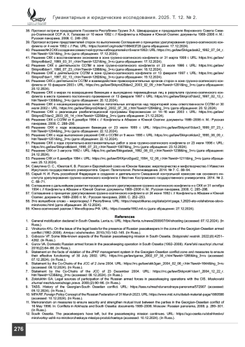 19. Положение о смешанных силах по установлению мира и поддержанию правопорядка в зоне конфликта от 12 июля 1992 г. URL: https://rrc.ge/law/Skkprot3dan1_1992_07_12_r.htm?lawid=1246&lng_3=ru (дата обращения: 12.12.2024).