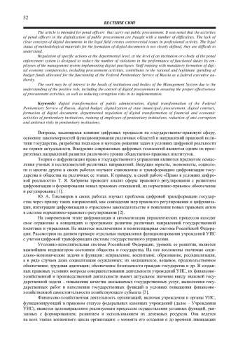 2. Право и цифровая трансформация / Ю. А. Тихомиров [и др.] // Право. Журнал Высшей школы экономики. № 2 / 2021. С. 4-21. EDN: UHCPTG