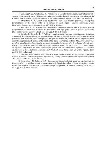 4. Омелехина Н. В. Цифровизация бюджетной сферы как предмет правового воздействия // Журнал российского права. 2020. № 8. С. 127-140. EDN: YDFNMR