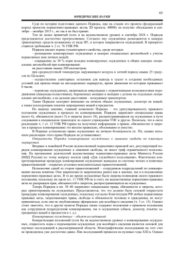 Статья: КОНВОИРОВАНИЕ ОСУЖДЕННЫХ К ЛИШЕНИЮ СВОБОДЫ: НОВЫЙ ПОРЯДОК, ОБЪЕКТ ИССЛЕДОВАНИЯ И ПРАВОПРИМЕНЕНИЕ (2025)