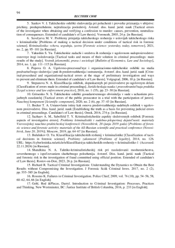 6. Савельева М. В. Проблемы принятия тактического решения в условиях тактического риска в криминалистике // Криминалистика: вчера, сегодня, завтра. 2021. № 2. С. 95-101. EDN: VCPFHI