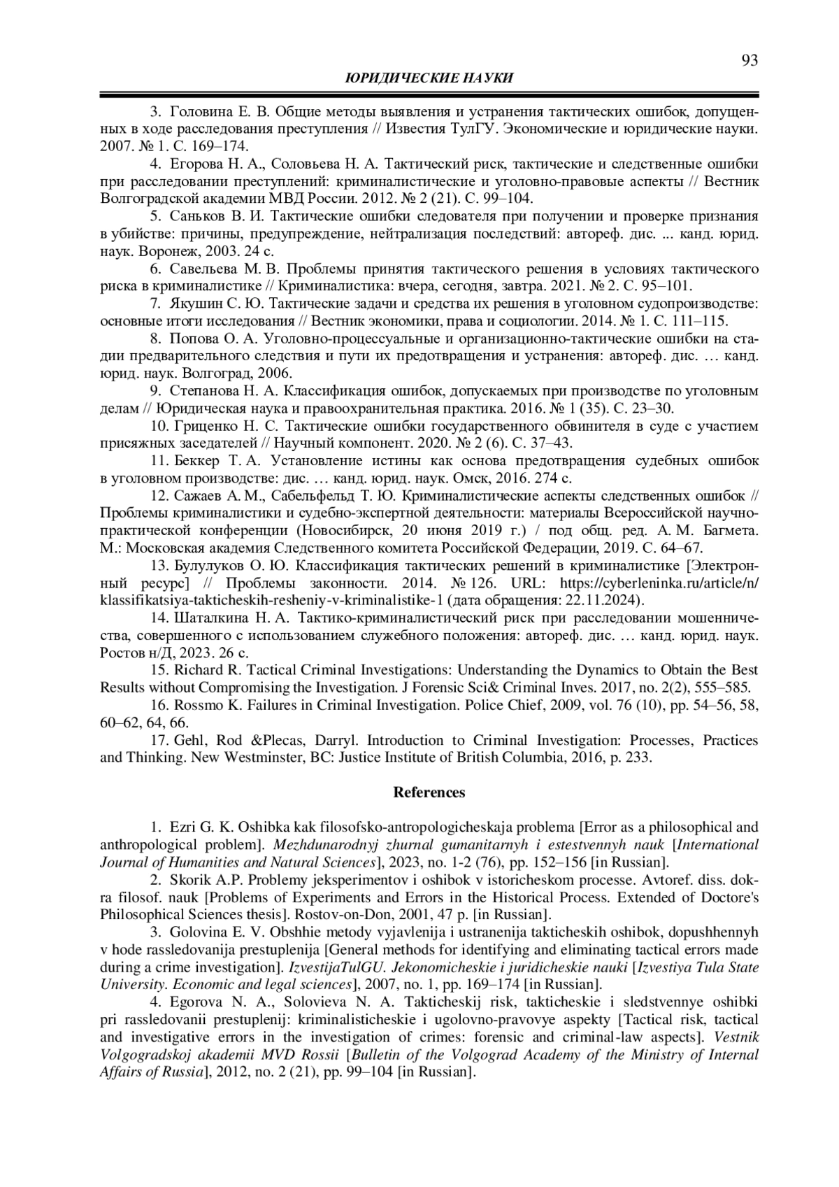 4. Егорова Н. А., Соловьева Н. А. Тактический риск, тактические и следственные ошибки при расследовании преступлений: криминалистические и уголовно-правовые аспекты // Вестник Волгоградской академии МВД России. 2012. № 2 (21). С. 99-104. EDN: PIUFWT