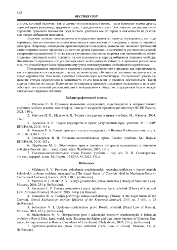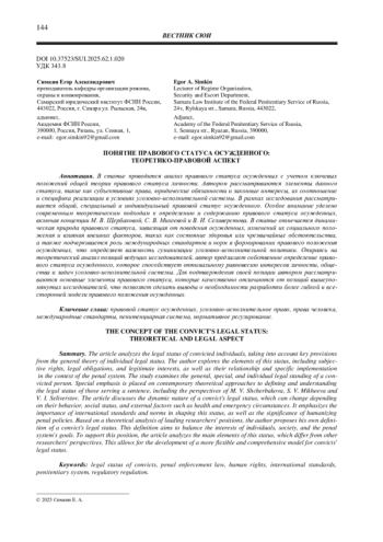 СИМКИН Е. А. ПОНЯТИЕ ПРАВОВОГО СТАТУСА ОСУЖДЕННОГО: ТЕОРЕТИКО-ПРАВОВОЙ АСПЕКТ // ВЕСТНИК САМАРСКОГО ЮРИДИЧЕСКОГО ИНСТИТУТА. 2025. № 1 (62)