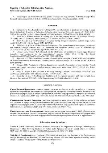 9. 	Technologies for disinfection of food grains: advances and way forward / R. Sirohi [et al.] // Food Research International. 2021. Т. 145. С. 110396. DOI: 10.1016/j.foodres.2021.110396 EDN: WHFBIA