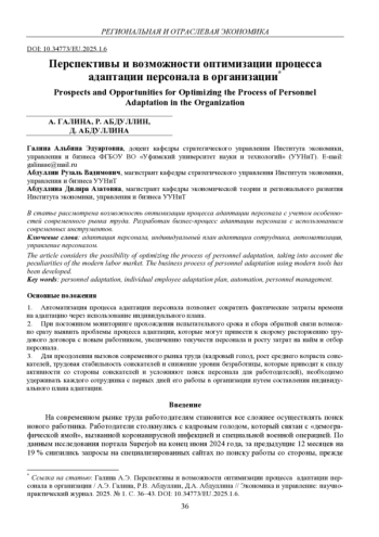 2. 	Абдуллина Д.А. Цифровые технологии адаптации персонала // Цифровые технологии в бизнесе: сборник материалов I междунар. научно-практич. конф. Уфа: РИЦ УУНиТ, 2022. С. 58-62.