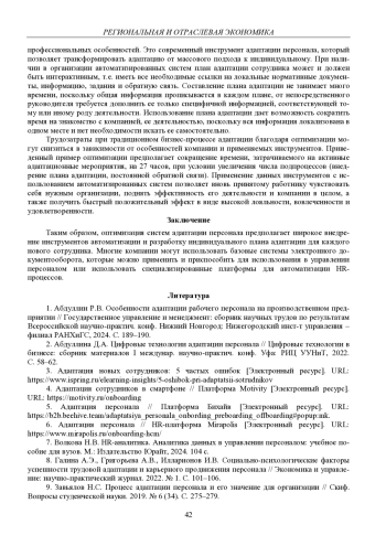 1. 	Абдуллин Р.В. Особенности адаптации рабочего персонала на производственном предприятии // Государственное управление и менеджмент: сборник научных трудов по результатам Всероссийской научно-практич. конф. Нижний Новгород: Нижегородский инст-т управления - филиал РАНХиГС, 2024. С. 189-190.  EDN: PVAAXN