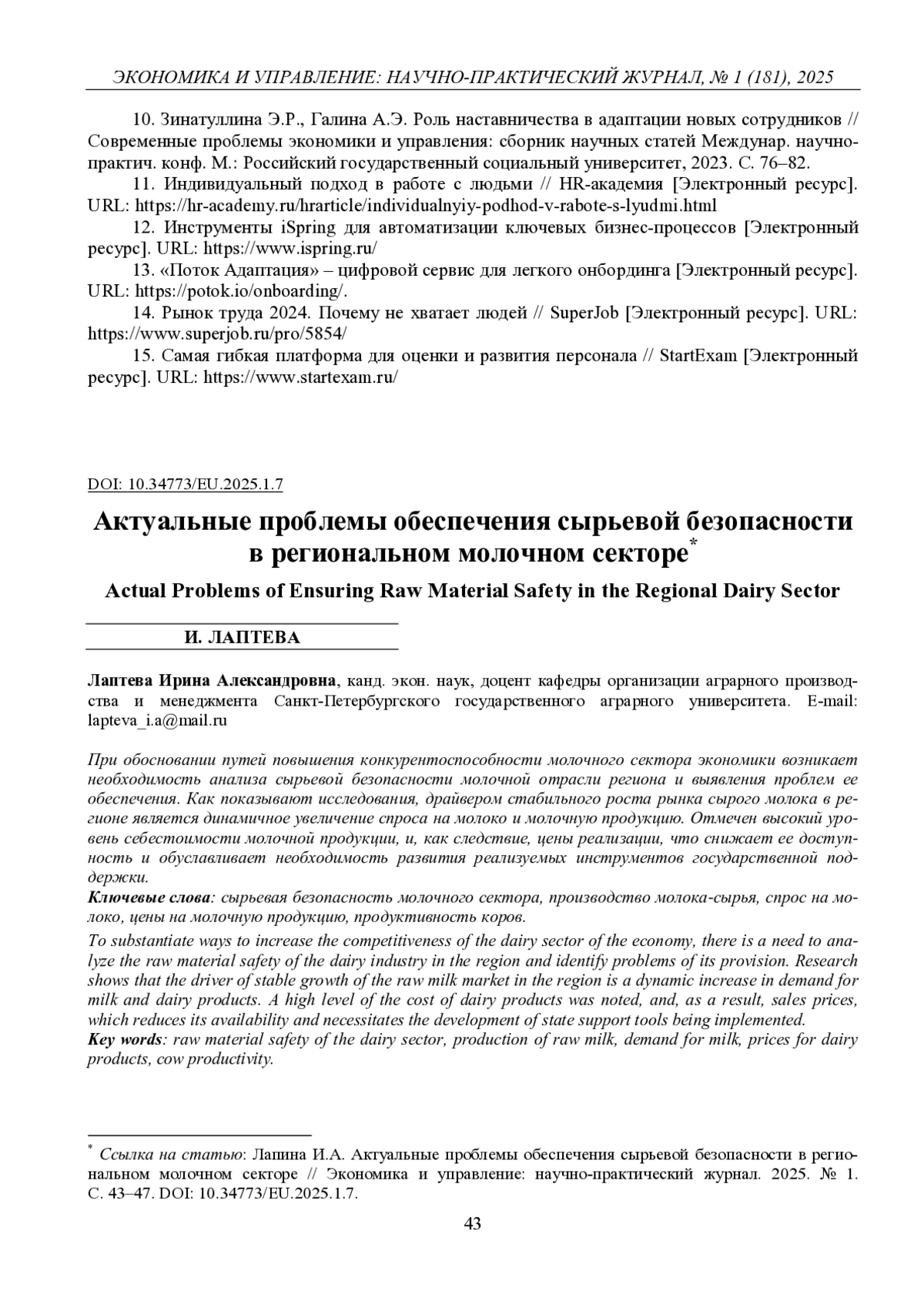 10. 	Зинатуллина Э.Р., Галина А.Э. Роль наставничества в адаптации новых сотрудников // Современные проблемы экономики и управления: сборник научных статей Междунар. научно-практич. конф. М.: Российский государственный социальный университет, 2023. С. 76-82.  EDN: HMAQZC