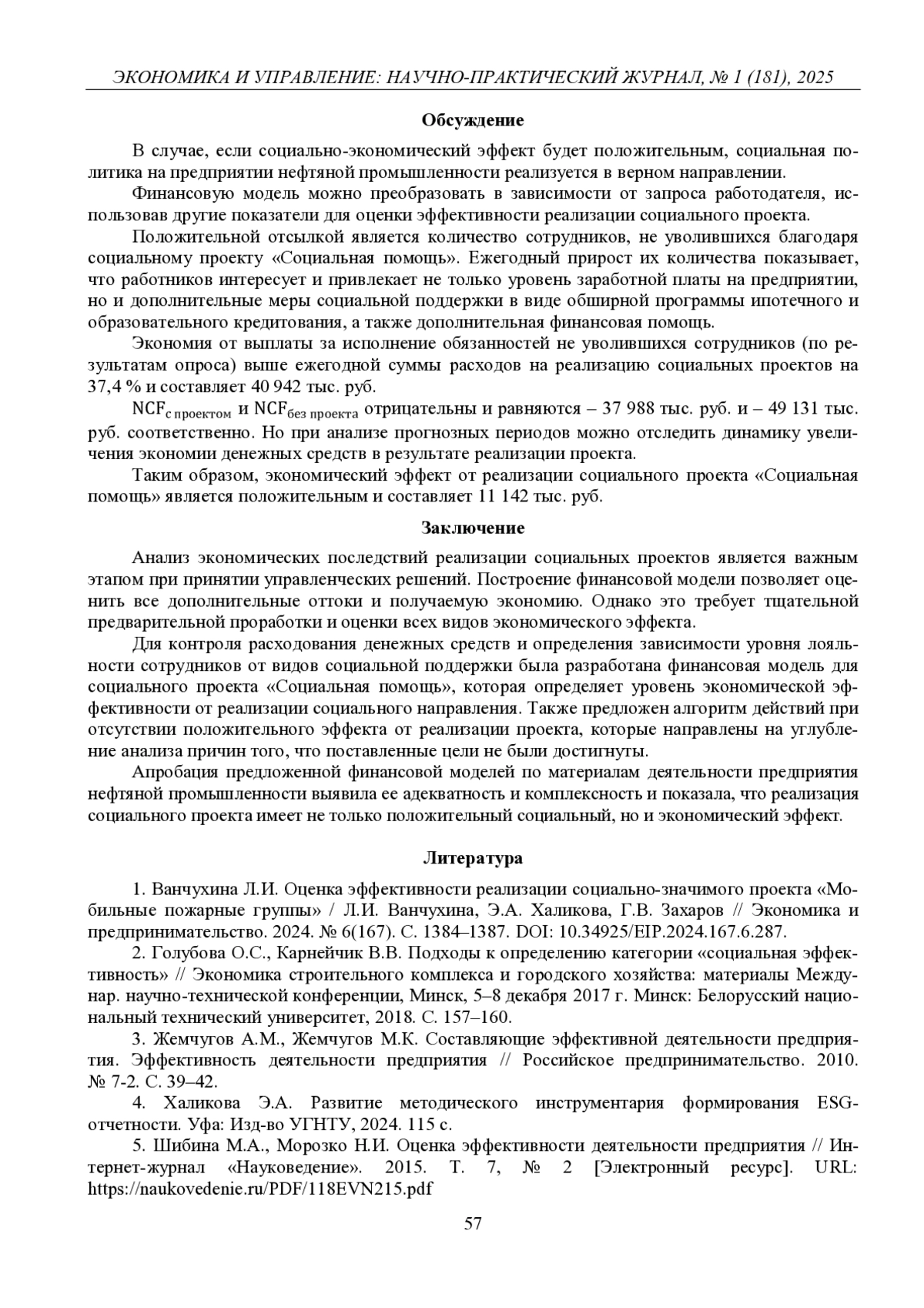 1. 	Ванчухина Л.И. Оценка эффективности реализации социально-значимого проекта “Мобильные пожарные группы” / Л.И. Ванчухина, Э.А. Халикова, Г.В. Захаров // Экономика и предпринимательство. 2024. № 6(167). С. 1384-1387.  DOI: 10.34925/EIP.2024.167.6.287  EDN: EOUAYQ