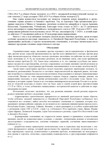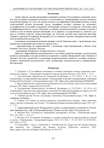 1. 	Губарьков С.В. Российская экономика в условиях адаптации к новому мировому экономическому порядку // Таможенная политика России на Дальнем Востоке. 2022. № 4(. С. 9-21.  EDN: PLTBIG