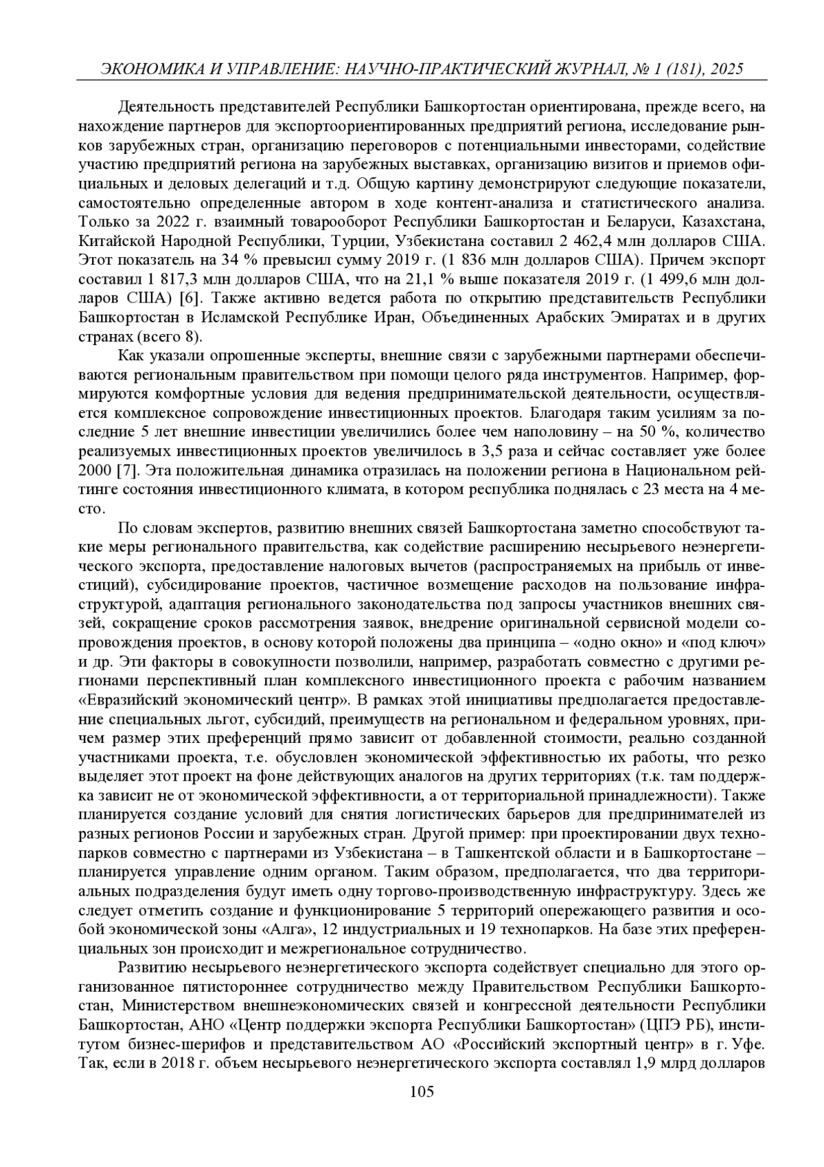 В статье на материалах авторских исследований, проведенных с помощью группового фокусированного интервью и статистического анализа, выделяется ведущая тенденция развития внешних связей Республики Башкортостан с зарубежными партнерами – переориентация на взаимодействие с регионами стран Центральной и Малой Азии, Ближнего и Дальнего Востока, расширение несырьевого неэнергетического экспорта