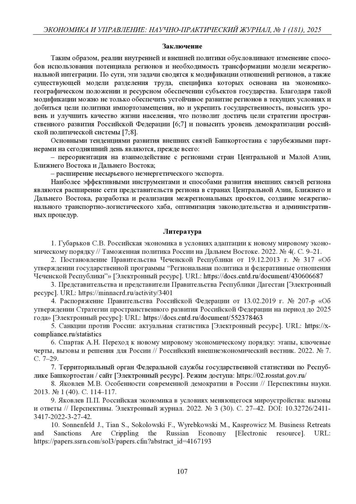 6. 	Спартак А.Н. Переход к новому мировому экономическому порядку: этапы, ключевые черты, вызовы и решения для России // Российский внешнеэкономический вестник. 2022. № 7. С. 7-29.  EDN: SOLIAZ