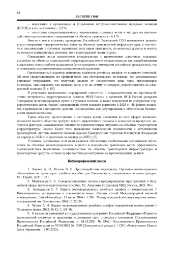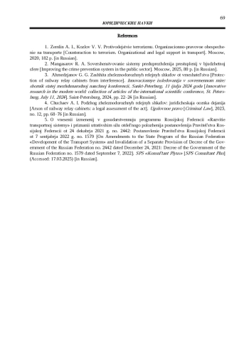 Статья: СОВРЕМЕННОЕ СОСТОЯНИЕ ПРОТИВОДЕЙСТВИЯ ПРОТИВОПРАВНЫМ ДЕЯНИЯМ, СВЯЗАННЫМ С ПОВРЕЖДЕНИЕМ УСТРОЙСТВ СИГНАЛИЗАЦИИ, ЦЕНТРАЛИЗАЦИИ И БЛОКИРОВКИ НА ОБЪЕКТАХ ЖЕЛЕЗНОДОРОЖНОГО ТРАНСПОРТА (2025)