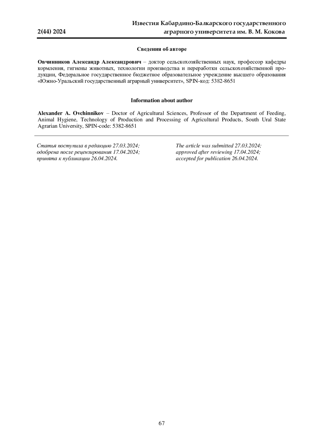 Журнал: ИЗВЕСТИЯ КАБАРДИНО-БАЛКАРСКОГО ГОСУДАРСТВЕННОГО АГРАРНОГО УНИВЕРСИТЕТА ИМ. В. М. КОКОВА