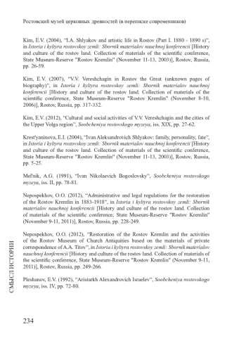 Ключевые фразы: андрей александрович титов, иван александрович шляков, иван иванович хранилов, владимир дмитриевич левшин, евграф иванович и всеволод иванович королевы, императорское московское археологическое об- щество (имао), митрополит ярославский и ростовский ионафан, ростовский музей церковных древностей (рмцд), василий васильевич верещагин, ари- старх александрович израилев, иван николаевич богословский
