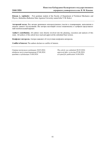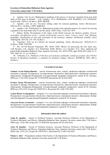 4. Математическое моделирование процесса скашивания растительности с приствольных полос плодовых деревьев в садах / А. К. Апажев, Ю. А. Шекихачев, Х. К. Каздохов, Е. А. Полищук // АгроЭкоИнфо. 2020. № 3. С. 20. EDN: MLIIGP