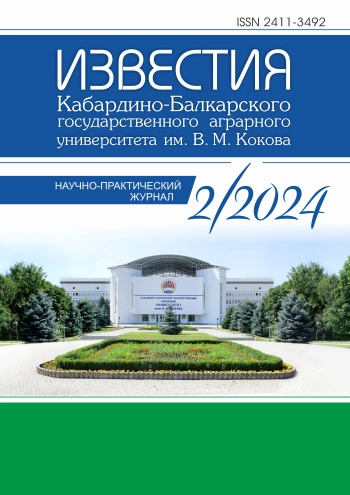 Данная статья посвящена изучению влияния стимулятора роста растений и комплексного водорастворимого удобрения на хозяйственно-ценные признаки и зерновую продуктивность гибридов кукурузы. Полевые эксперименты проводились в 2021-2023 гг. в учебно-производственном комплексе Кабардино-Балкарского государственного аграрного университета имени В. М. Кокова. Опыты закладывались на черноземе выщелоченном. Опытный участок характеризуется следующими агрохимическими показателями: содержимое гумуса в пахотном горизонте - 3,3%, общий азот - 0,28%, емкость поглощения - 34,4 мг∙эквивалент на 100 грамм почвы, реакция почвенного раствора нейтральная (рН - 7). Содержание подвижного фосфора составляет 15,0 мг на 100 г почвы, то есть средняя обеспеченность (по Чирикову), обеспеченность обменным калием повышенная - 15-18 мг на 100 г почвы (по Чирикову). По механическому составу эта почва тяжелосуглинистая. Содержание в ней физической глины составляет 57%. Целью исследований было определение влияния стимулятора роста растений и комплексного водорастворимого удобрения на хозяйственно-ценные признаки и зерновую продуктивность среднераннего гибрида кукурузы Родник 292 МВ и среднеспелого гибрида кукурузы Диана МВ. Установлено, что применение стимулятора роста растений Регоплант и комплексного водорастворимого удобрения Плантафол увеличили высоту растения на 3,7%, длину початка на 10,6-13,5%, количество зѐрен в початке на 24,2-26,3%, массу зерна с одного початка на 15,8-35,9% и массу 1000 зѐрен на 7,5-9,4%, а также максимально увеличило урожайность у гибрида Родник 292 МВ до 8,16-8,96 т/га и гибрида Диана МВ до 10,0-10,32 т/га, где сбор кормовых единиц достигал 12,6-13,8 т/га для гибрида кукурузы Родник 292 МВ и у гибрида Диана МВ - 15,7-16,1 т/га. При этом содержание белка выросло у гибридов кукурузы Родник 292 МВ до 13,2-18,4% и Диана МВ до 11,8-29,4%.