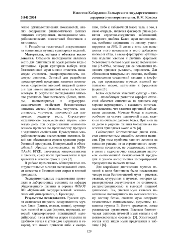 5. 	Обоснование использования нутовой муки в технологии безглютеновых продуктов / О. А. Корнева, С. С. Баклагова, О. С. Лысенко, И. Ю. Сертакова, А. А. Корнева // Научные труды КубГТУ. 2016. № 14. С. 833-841. EDN: ZHJSLJ