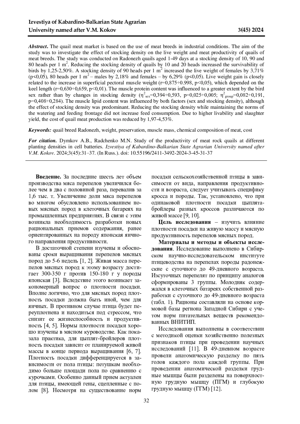 7. 	Семенченко С. В., Засемчук И. В. Эффективность клеточного выращивания бройлеров при разной плотности посадки // Известия Оренбургского государственного аграрного университета. 2021. № 3(89). С. 315-318. EDN: XPHVMZ