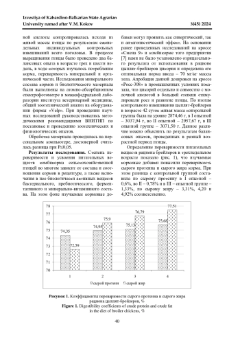 Статья: РАЗЛИЧИЕ В ПЕРЕВАРИМОСТИ И УСВОЕНИИ ПИТАТЕЛЬНЫХ ВЕЩЕСТВ РАЦИОНА ЦЫПЛЯТ-БРОЙЛЕРОВ С КОРМОВОЙ ДОБАВКОЙ ФИТОБИОТИКА И ПРЕБИОТИКА (2024)