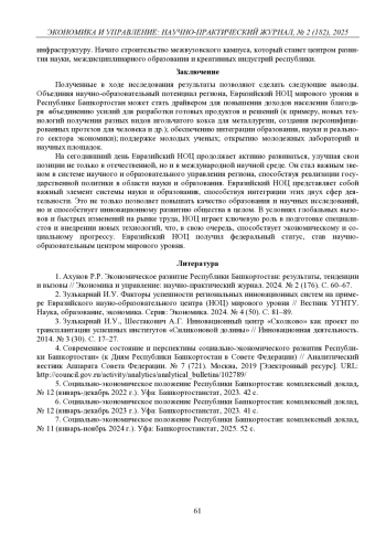 1. Ахунов Р.Р. Экономическое развитие Республики Башкортостан: результаты, тенденции и вызовы // Экономика и управление: научно-практический журнал. 2024. № 2 (176). С. 60-67.