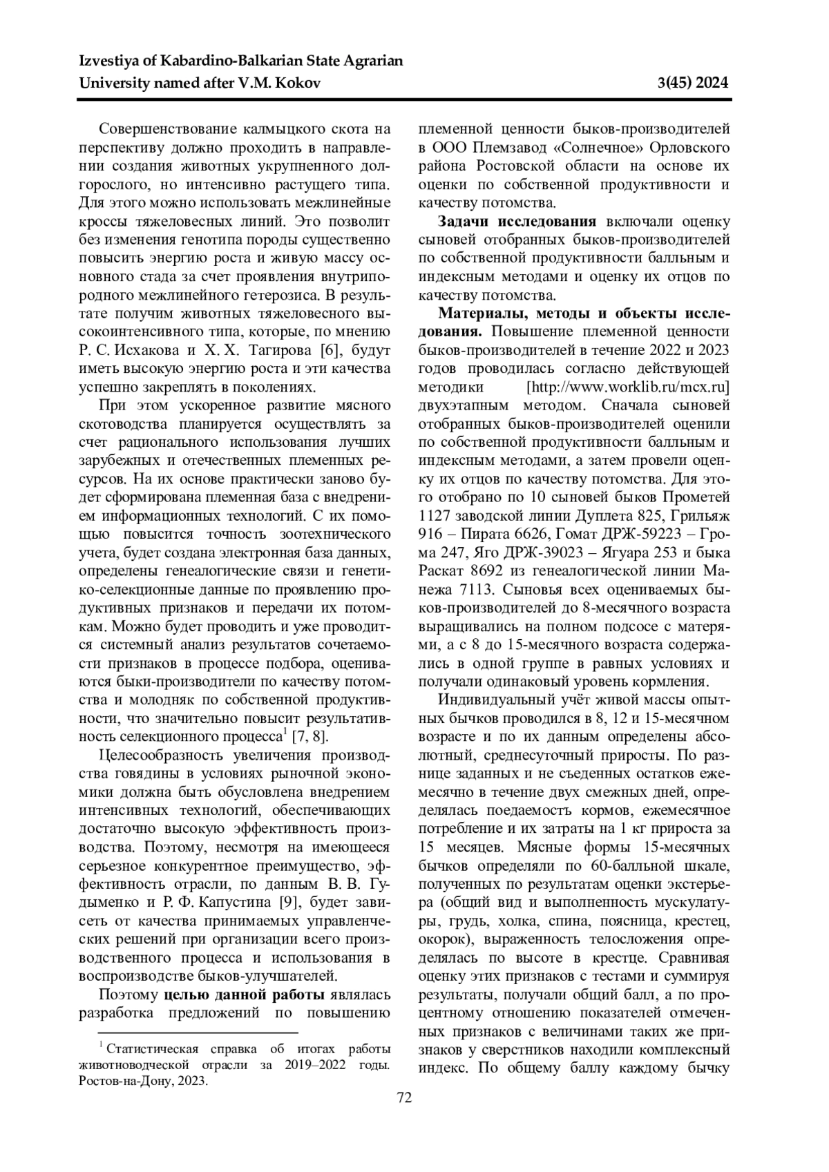Статья: МЯСНАЯ ПРОДУКТИВНОСТЬ ПОТОМКОВ БЫКОВ-УЛУЧШАТЕЛЕЙ КАЛМЫЦКОЙ ПОРОДЫ (2024)