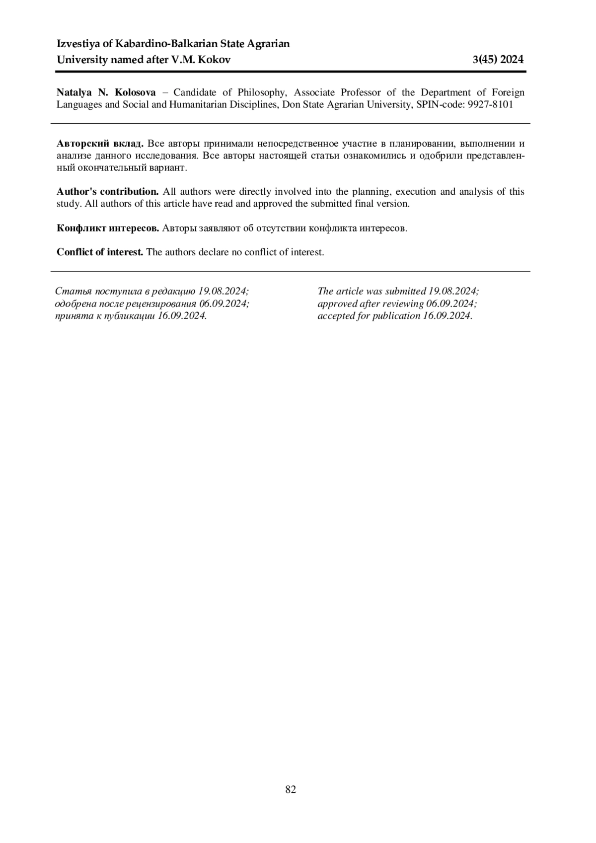 Журнал: ИЗВЕСТИЯ КАБАРДИНО-БАЛКАРСКОГО ГОСУДАРСТВЕННОГО АГРАРНОГО УНИВЕРСИТЕТА ИМ. В. М. КОКОВА