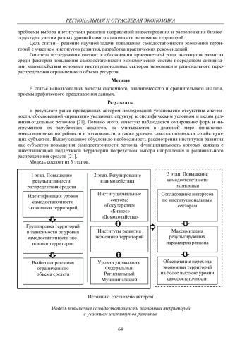 Ключевые фразы: самодостаточность экономики территории, социально-экономическое развитие, инвестиции, ИНСТИТУТЫ РАЗВИТИЯ, финансово-инвестиционная поддержка, институциональные сектора