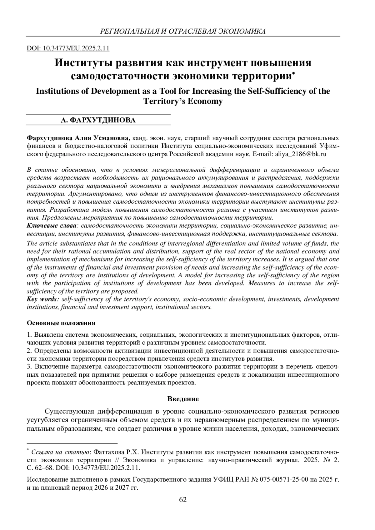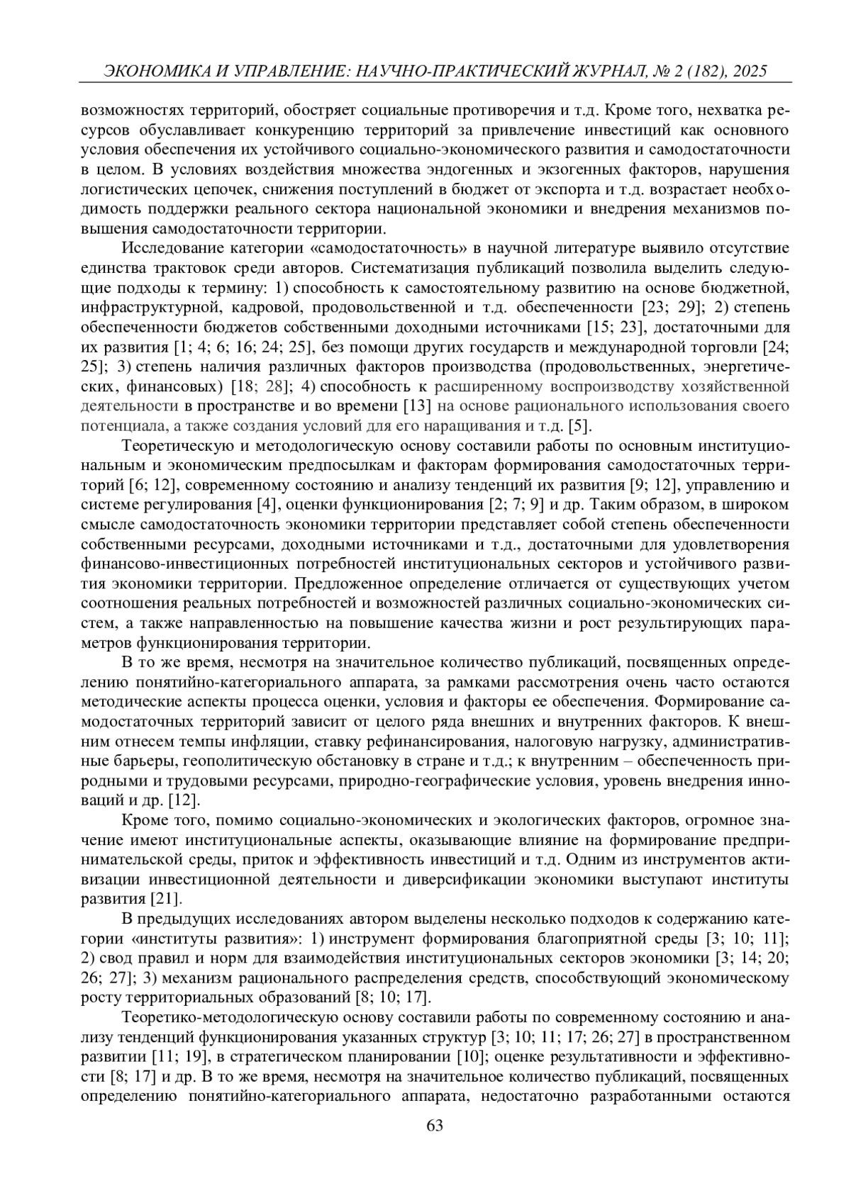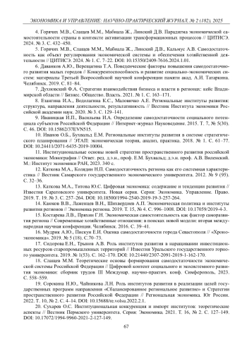 ФАРХУТДИНОВА А. У. ИНСТИТУТЫ РАЗВИТИЯ КАК ИНСТРУМЕНТ ПОВЫШЕНИЯ САМОДОСТАТОЧНОСТИ ЭКОНОМИКИ ТЕРРИТОРИИ // ЭКОНОМИКА И УПРАВЛЕНИЕ: НАУЧНО-ПРАКТИЧЕСКИЙ ЖУРНАЛ. 2025. № 2 (182)