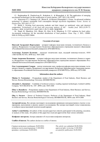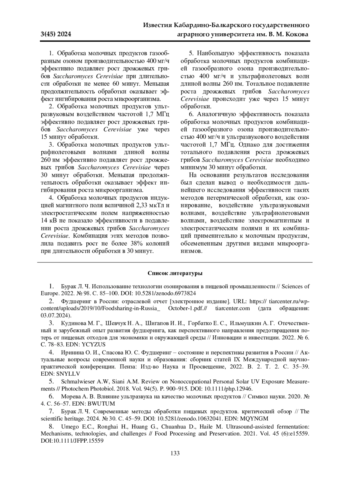 7. 	Бурак Л. Ч. Современные методы обработки пищевых продуктов. критический обзор // The scientific heritage. 2024. № 30. С. 45-59. DOI: 10.5281/zenodo.10632041 EDN: MQYNGM