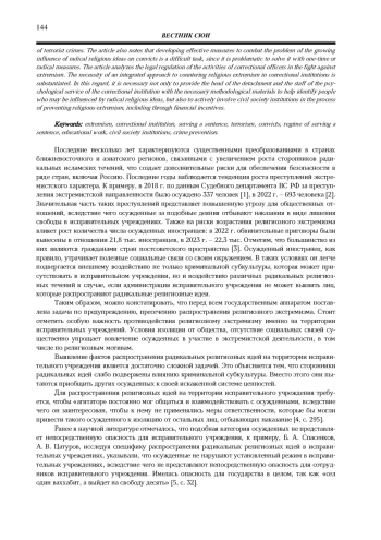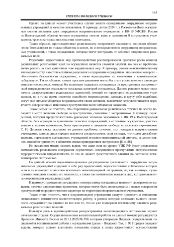 6. 	Ципилев С. Н. К вопросу о распространении экстремизма в исправительных учреждениях // Пенитенциарная наука. 2018. №. 1 (41). С. 87-92. EDN: YTXWZD